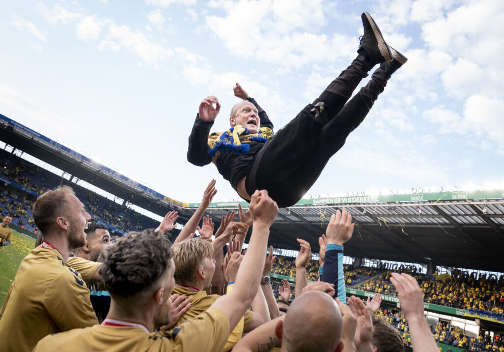 Mere specifikt blev guldet sikret d. 24 maj - præcis fire år efter Niels Frederiksen løftede trofæet med Brøndby IF.