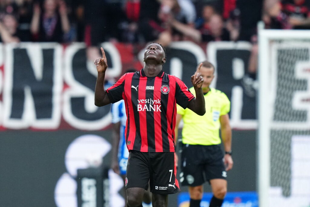Leeroy Owusu udfordrede det midtjyske forsvar, hvor indskiftede Aral Simsir var med hjemme for at forsvare.