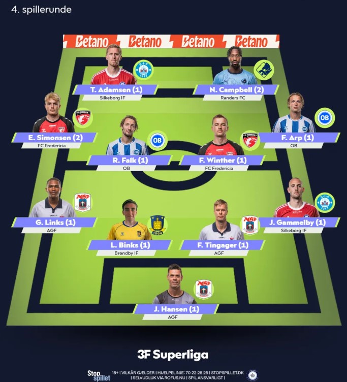Se 3F Superligaens Rundens Hold for 4. spillerunde nedenfor