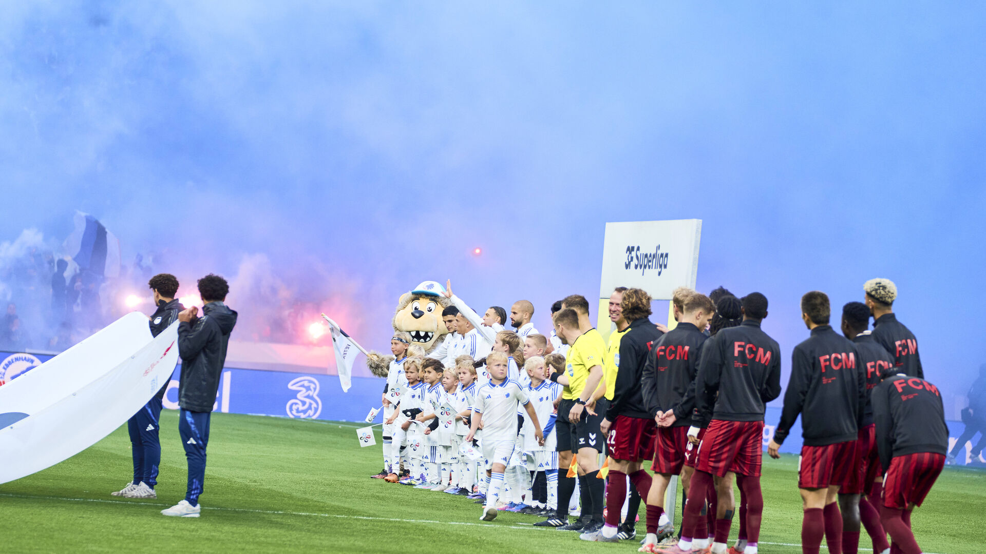 Og blev udnyttet til fulde. For til spillernes indløb blev der nemlig fyret 50 styk pyroteknik af.