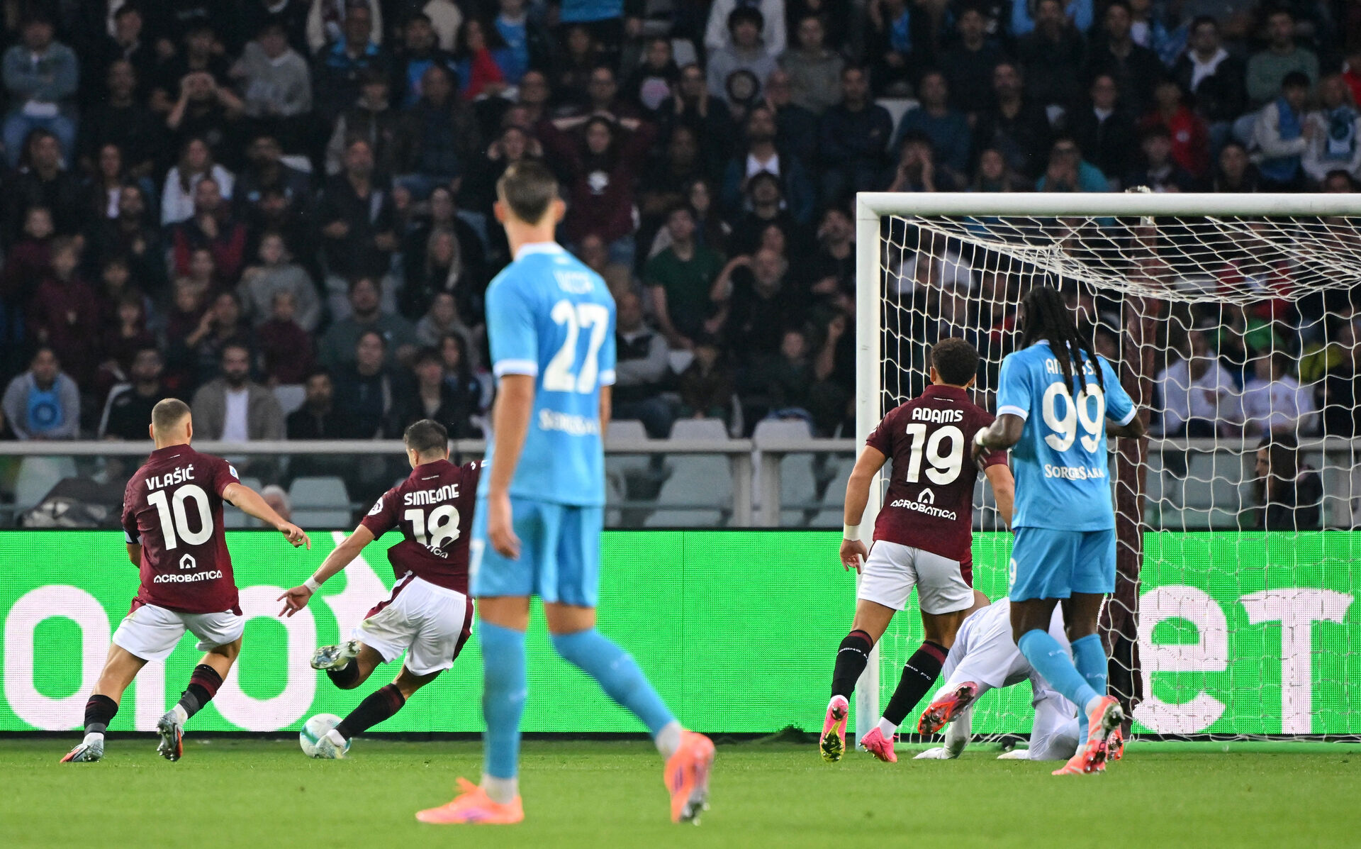 Selvom den unge franskmand havde oceaner af tid var han lige ved at blive løbet op af den romerske defensiv, men i sidste øjeblik fik han afsluttet og scoret til 0-1.