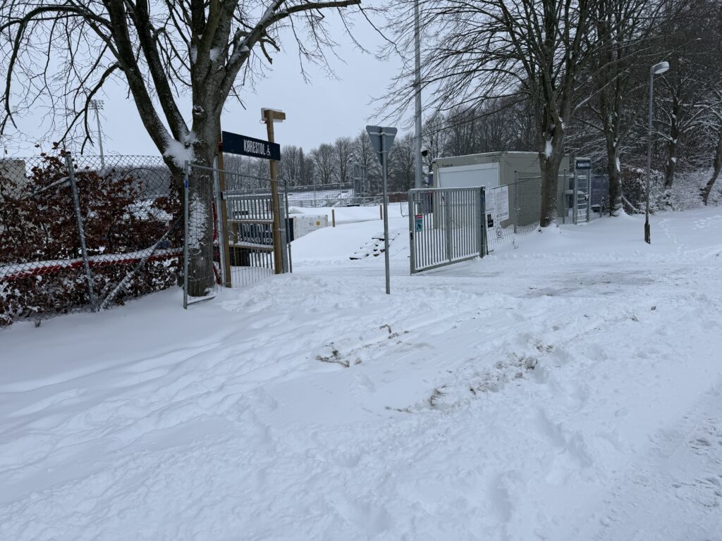 Der er en del sne ved AGF’s hjemmebane i Århus, hvor der efter planen skal spilles Superliga-kamp i aften mod OB.
