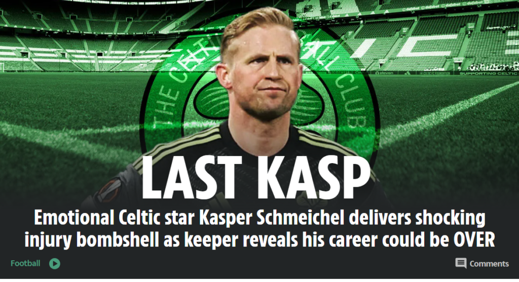 Sådan skriver det skotske medie Daily Record om det, Kasper Schmeichel har gennemgået i Celtic det seneste år efter den skade mod Portugal, der nu koster en operation og måske et karrierestop.