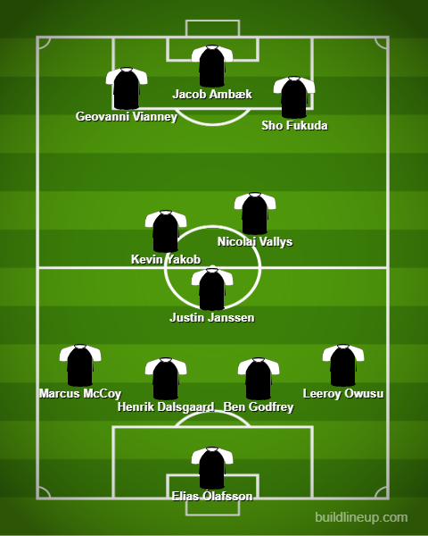 Jacob Ambæk er selvskreven med en flot angriber-præstation, og han får selskab af Sho Fukuda, der drev gæk med Sønderjyske og må være i spil til flere starter foran Ousmane Sow.